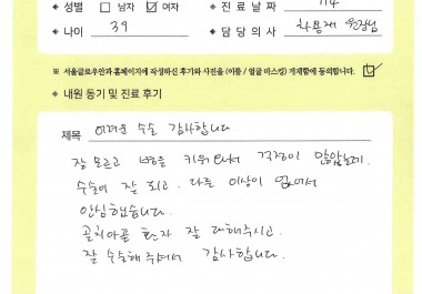 ② '서울글로우안과의원'은 이용자로부터 제출되는 불만사항 및 의견은 우선적으로 그 사항을 처리합니다. 다만, 신속한 처리가 곤란한 경우에는 이용자에게 그 사유와 처리일정을 즉시 통보해 드립니다.